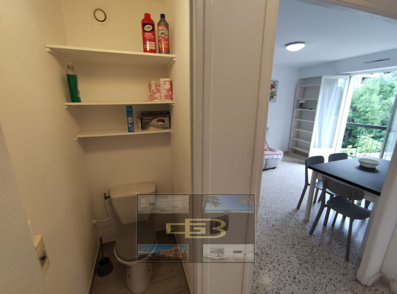 Appartement de type deux pièces comprenant une pièce principale, une chambre, une cuisine séparée, une salle de douches, un WC indépendant et deux balcons. IDEAL ETUDIANT, proche de la Fac Carlone. Confort : matelas NEUF, machine à café NESCAFE, télévision 16/9.